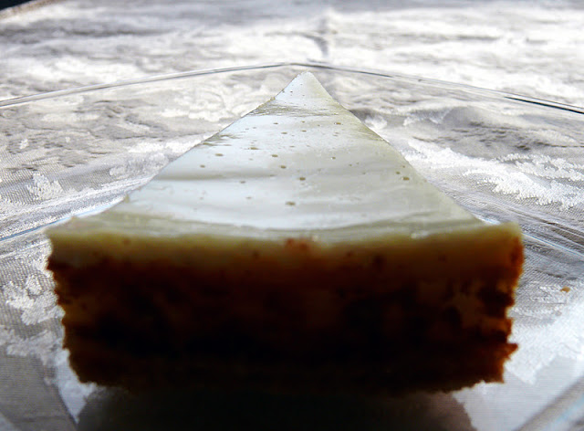 Ein paar Minuten bevor er fertig ist, nimmt man den Kuchen nochmal aus dem Ofen und es kommt eine Saure Sahne-Mischung drauf. Diesen Schritt habe ich nicht wirklich verstanden. Weder sieht die saure Sahne sonderlich gut aus, noch schmeckt sie wirklich lecker. Ich habe so etwas auch nie bei den Cheesecakes in New York bemerkt. Kennt ihr das? Die weiße Schicht erkennt ihr am besten auf den folgenden Foto.